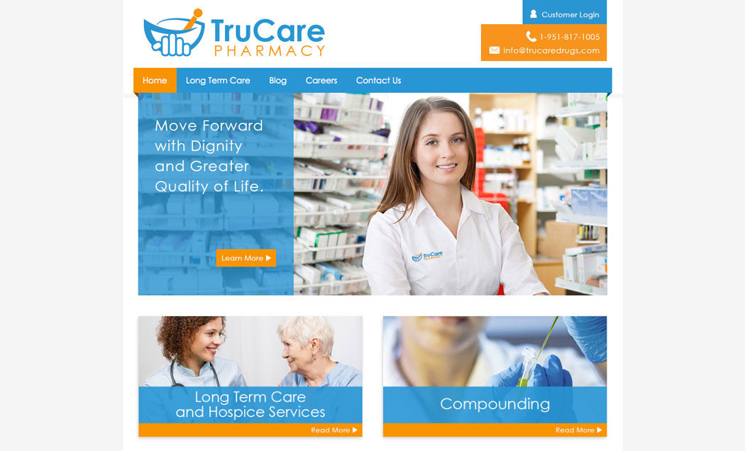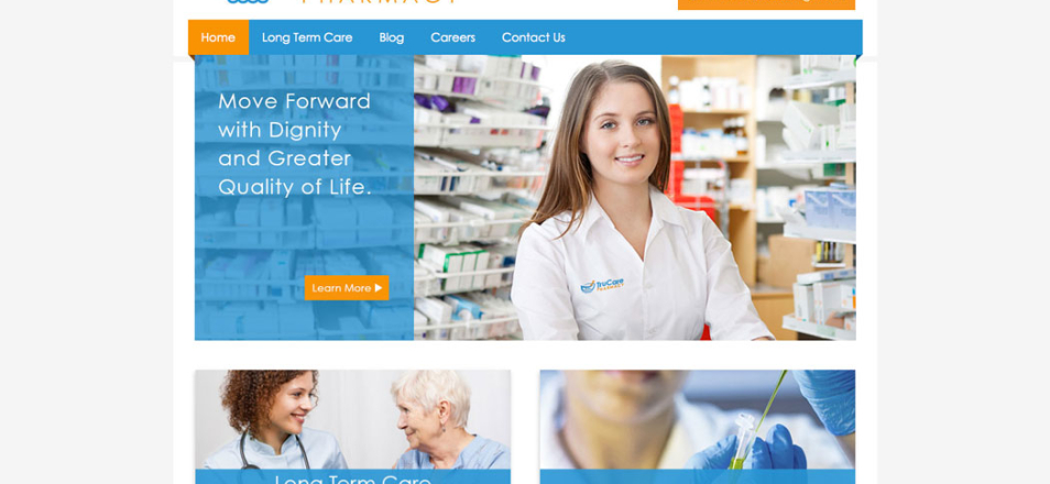 Business profile website for a pharmaceutical compounding and long term care company.